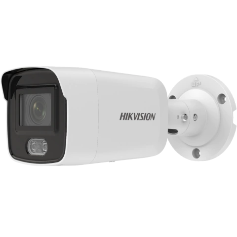 cámara IP Tipo Bullet ColorVu de 2MP, AcuSense lente de 2,8mm .Color: 0.0005 Lux, (luz blanca hasta 40m) H.265+, BLC, HLC, 3D DNR, WDR. Ranura para micro SD hasta 256GB 12VDC PoE IP67. micrófono incorporado Analíticas: Detección de movimiento (clasificación de objetivos humanos y de vehículos), alarma de manipulación de video, Detección de cambio de escena.