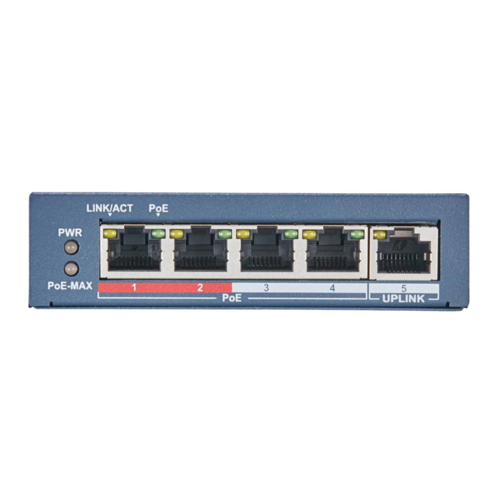 Switch No Administrable, 1port 100M Ethernet, 4 ports 10/100 puertos Ethernet Base-TX, POE BUDGET 58W, compatible con el modo de red EXTEND (Extend On:250m,10M,CAT 5e